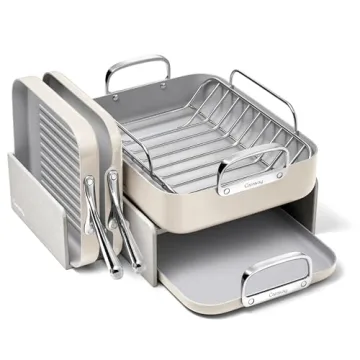Introducing the Caraway Square Cookware Set, your ultimate kitchen companion designed for both culinary enthusiasts and everyday cooks alike. This beautifully crafted set features a chic and versatile design, perfect for a variety of cooking techniques such as griddling, toasting, searing, or roasting. Available in a stunning cream color with elegant gold handles, it adds a touch of sophistication to any kitchen decor. But beauty isn’t just skin deep! The high-quality non-toxic ceramic...