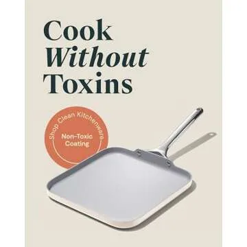 Caraway Square Griddle Pan - 11” Square Pan - Non-Stick Ceramic Coated - Non Toxic, PTFE & PFOA Free - Oven Safe & Compatible with All Stovetops - Cream