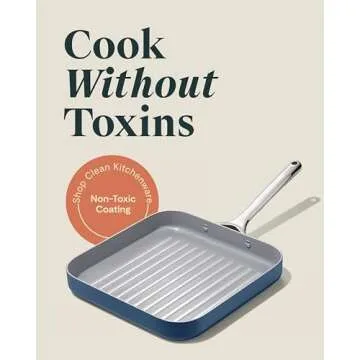 Caraway Square Grill Pan - 11” Grill Pan - Non-Stick Ceramic Coated - Non Toxic, PTFE & PFOA Free - Oven Safe & Compatible with All Stovetops - Navy