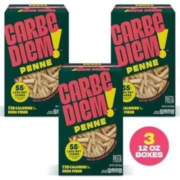 CARBE DIEM! Penne | 3x 12oz Bags | Lower Net Carb Pasta with a Traditional Flavor & Texture | Pasta Re-Imagined for Healthy Lifestyles | Reduced Calorie Food | Penne Pasta | Lower Calorie Pasta