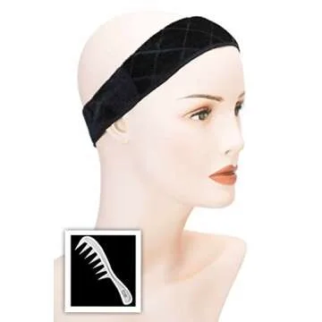 Cardani Magic Wig Grip Headband and Wig Comb I Non Slip Velour Secures Wigs Black