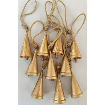 Carfar Set of 10 Vintage Rustic Tin Bells Wall Hanging Décor 6cm Big Bells On Jute Rope Christmas Hanging Jingle Bells (Cone)