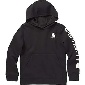 Carhartt Boys' Long Sleeve Hooded Sweatshirt, Caviar Black, Medium (10/12)