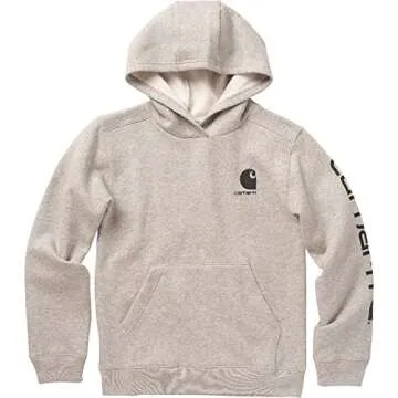 Carhartt Boys' Long Sleeve Hooded Sweatshirt, Grey Heather, Large (14/16)