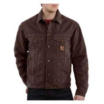 Carhartt Sherpa Lined Jean Jacket for Men - Durable Dark Brown Style