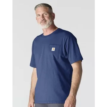 Show more Discover the Carhartt Men's Loose Fit Heavyweight Short-Sleeve Pocket Work Utility T-Shirt, an iconic piece that has defined durability and comfort since its introduction in 1992. Known as the K87, this classic t-shirt combines rugged functionality with a loose fit that allows for optimal movement. Whether you're heading to the job site or running errands, the K87’s heavyweight cotton fabric ensures that you stay comfortable all day long. With an easily recognizable patch pocket on the chest and a rib-knit crewneck, this t-shirt is designed to be as stylish as it is practical. Built to last, it holds its shape wash after wash, making it an essential addition to any wardrobe.