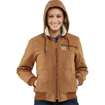 Show moreThe Carhartt Women's Weathered Duck Wildwood Jacket in Carhartt Brown is designed for those who embrace the outdoors with style and functionality. Made from durable weathered duck fabric, this jacket offers the perfect blend of ruggedness and comfort, ideal for both work and leisure. Its midweight insulation ensures warmth without bulk, making it suitable for a variety of weather conditions. The rib-knit cuffs and bottom hem provide a snug fit to keep cold air out, while the classic design ensures you will look great wherever you go.