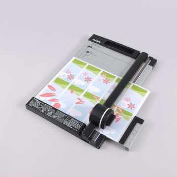 Show moreIntroducing the CARL 12 inch Green Friendly Professional Rotary Paper Trimmer—a game-changing tool built for precision enthusiasts and busy crafters alike! This professional-grade cutter is meticulously designed with a calibrated metal base board to provide unparalleled accuracy in every slice. Whether you're working with standard paper, cardstock, photos, or even thicker plastic sheets, this rotary trimmer makes quick work of cutting up to 15 sheets of 20 lbs paper at once. Say goodbye to uneven edges and frustrating cuts, and hello to a seamless cutting experience!