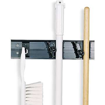 Show moreTransform your cleaning organization game with the Carlisle FoodService Products 4073100 Roll 'N Grip Mop, Broom and Tool Holder. This innovative storage system is designed to hold brooms, mops, brushes, and other handled tools effortlessly, making it the perfect accessory for any cleaning arsenal. Featuring a unique roller grip that self-adjusts to a variety of handle diameters, you’ll enjoy a secure and customized fit for each tool you own. With slots for up to three handles and an additional hook for brushes or tools, this holder promotes optimal drying for mop and broom bristles, ensuring they stay in top condition while freeing up precious floor space in your home or workspace.