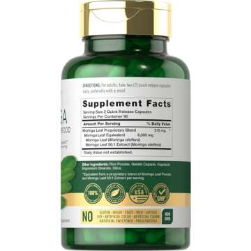 Carlyle Moringa Oleifera | 180 Capsules | Non-GMO and Gluten Free Supplement | Complete Green Superfood | from Moringa Leaf Powder