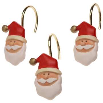 Festive Santa Claus Ceramic Resin Shower Curtain Hooks - Set of 12