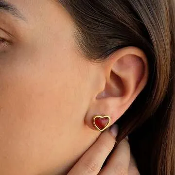 Show more Discover the enchanting beauty of our Carnelian Crystal Heart Earrings, designed with love and crafted for elegance. Made with high-quality stainless steel and beautifully finished with 18k gold filled, these earrings are not only appealing but also nickel-free and waterproof, ensuring comfort for everyday wear. Each exquisite earring features an elegant natural carnelian stone, known for its vibrant red hue and meaningful attributes, making these heart earrings a perfect blend of fashion and significance.