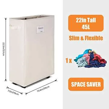 Caroeas Laundry Basket on Wheels, Slim Laundry Hamper Collapsible with Note Cards Waterproof Corner Hamper with Lid Breathable Mesh Cover (Slim 22 inch,Beige)
