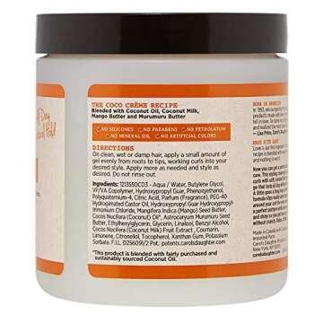 Carol’s Daughter Coco Creme Curl Shaping Cream Gel, with Coconut Oil, Coconut Milk, Hair Gel for Curly Hair , Silicone, Paraben and Mineral Oil Free, For Very Dry Split Ends, 16 Oz