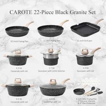 CAROTE 22-Piece Nonstick Cookware Set - Granite Induction Pots and Pans