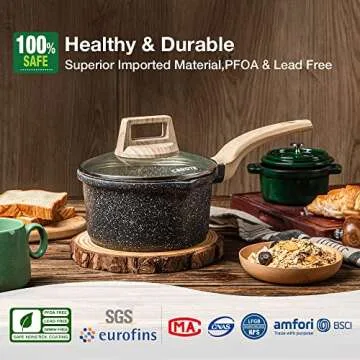 CAROTE Saucepan with Lid,Nonstick Milk Pan for Induction, Gas and Electric Hobs, Small Cooking Pot with Pour Spout (18cm, Classic Granite)