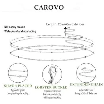 CAROVO Belly Waist Chain for Women 14K Silver Plated Layered Body Chains Boho Coin Bead Belly Chain Sexy Bikini Body Jewelry for Women Adjustable