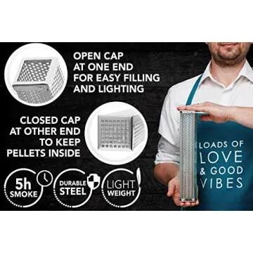 This innovative product is perfect for both beginners and seasoned BBQ enthusiasts. Whether you own a Traeger, Weber, Masterbuilt, Yoder, or Big Green Egg, this tube will convert any standard cooker into an exceptional cold smoker without any required modifications. Gas and electric grill owners will appreciate the ease of achieving deep smoke flavors that often elude them compared to traditional charcoal smokers.