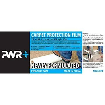 Show more Introducing the **Carpet Protector 24" x 200' Plastic Film Paint Protector**: the ultimate solution for safeguarding your carpets and rugs from unpredictable spills and drips! Engineered with a newly formulated adhesive, this self-adhering protective tape offers unparalleled resistance against tears, punctures, and a myriad of potential household mishaps such as water, paint, stains, dust, and dirt. Whether you're undertaking a messy DIY project like painting a room or grooming your furry friend, this durable, long-lasting film ensures your carpets remain pristine.