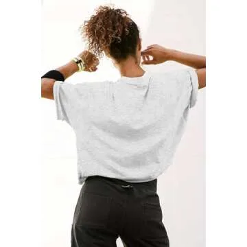 Carpetcom Oversized Workout Shirts for Women Short Sleeve Drop Shoulder Casual Basic Crop Tops Light Gray