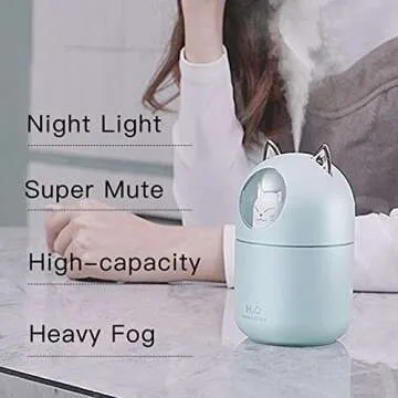 Show more Experience the charm and functionality of the Carrie Joe Cat Humidifier, where adorable design meets essential health benefits. This whimsical mini humidifier not only adds a playful touch to your space but also works wonders in moisturizing dry skin, combating nosebleeds, and alleviating dryness related to environmental conditions. Crafted from BPA-free materials, it ensures safety for both babies and pregnant mothers. With its cute cat shape, it serves as an engaging ornament for your bedroom, office, or car, making your atmosphere both playful and refreshing.