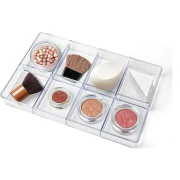 carrotez Desk Drawer Organizer Tray, 8 Grid, Stackable Clear Plastic Storage Organizer for Office Supplies, Makeup, Stationary, Accessory