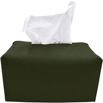 carrotez Tissue Box Cover, [Refined] Modern PU Leather Rectangular Tissue Box Holder - Decorative Holder/Organizer for Bathroom Vanity Countertop, Night Stands, Office Desk 9.5"X5"X5" - Khaki