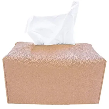 carrotez Tissue Box Cover, [Refined] Modern PU Leather Rectangular Tissue Box Holder - Decorative Holder/Organizer for Bathroom Vanity Countertop, Night Stands, Office Desk 9.5"X5"X5" - Peach Pink