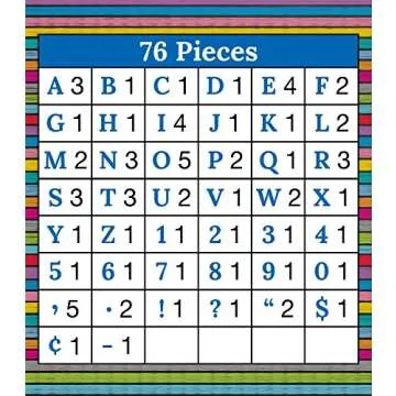Show moreElevate your educational space and creative projects with the Carson Dellosa 76 Piece Colorful Chalkboard Bulletin Board Letters Set. This vibrant collection includes everything you need to make your bulletin boards, classrooms, and displays come alive with color and personality. With a perfect assortment of 52 uppercase letters, 10 numbers, and 14 punctuation marks, this set provides limitless opportunities for customization. Whether you’re crafting welcome messages, classroom rules, or fun displays, these eye-catching letters will engage and inspire students of all ages!
