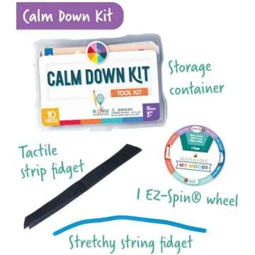 Show more Make learning engaging and enjoyable with Carson Dellosa's Be Clever Wherever Calm Down Corner Kit! This innovative and portable toolkit is designed to help children manage their emotions and learn vital social-emotional skills. Packed with hands-on manipulatives, meditation methods, and calming down toys, this toolkit is ideal for kids who might need extra help navigating their feelings. The kit includes a variety of fun items, such as a spin wheel, fidget toys, a reference sticker, and 6 double-sided calming corner charts—each crafted to assist children in learning effective calming strategies.