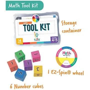 Carson Dellosa Be Clever Wherever Math Tool Kit, Grades 4-5 Math Manipulatives for Multiplication, Division, and Fractions with Math Charts, EZ-Spin Wheel, Math Cubes, and Reference Sticker (14 pc)