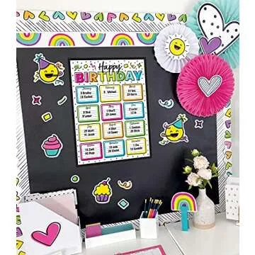 Carson Dellosa Kind Vibes Birthday Chart—Colorful Monthly Student Birthday Tracker, Happy Birthday Bulletin Board Decor With Confetti and Polka Dots (17" x 22")
