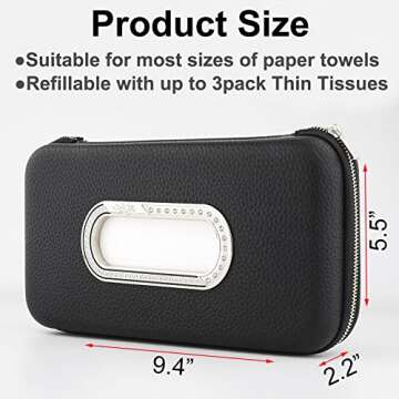 Cartisen Car Tissue Holder, Sun Visor Napkin Holder, Car Visor Tissue Holder, Luxury PU Leather Backseat Tissue Case Holder (Black)