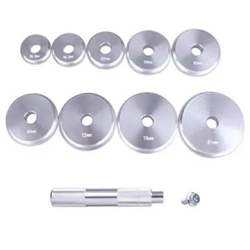 Show moreThe CARTMAN Bearing Race and Seal Bushing Driver Install Set is the ultimate solution for automotive enthusiasts and professionals alike. Designed specifically for installing axle bearings and seals on a wide range of vehicles—including cars, trucks, and SUVs—this master universal kit includes everything you need to ensure a precise installation. The set comprises 1 ergonomic handle and 9 disc drivers that accommodate most standard wheel bearings, providing versatility for various applications.