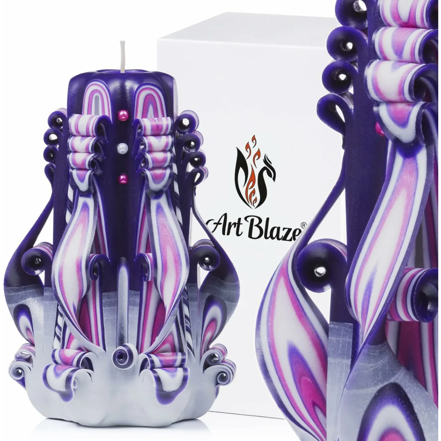 Show moreIntroducing the Carved Candles - Handmade Candles Long Burning, a truly luxurious and unique addition to your home decor. This beautiful candle is lovingly handcrafted with intricate details that make it a stunning piece of art. Unlike your typical candle, this one is unscented, making it perfect for those with sensitivities to fragrances. The long-burning quality ensures that you can enjoy its beauty for an extended period, making it a lasting centerpiece for any room. Designed in a mesmerizing lilac sunset color, this decorative candle brings an element of elegance and charm to any setting, whether you're celebrating a special occasion or simply enhancing your home atmosphere. Packaged with care, this candle arrives in pristine condition, ensuring that every delicate curl and swirl is intact.