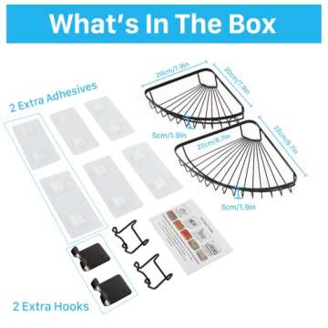 Carwiner Adhesive Corner Shower Caddy 2-Pack, Wall Mounted Bathroom Shelf, 304 Stainless Steel Shower Shelf with Hooks, Hanging Storage Organizer Strong and Sturdy No Drilling (Black)