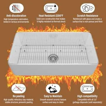 CASAINC Farmhouse Sink, White Farmhouse Kitchen Sink Fireclay, Apron Farm Sink 10" Deep Single Bowl, Undermount Kitchen Sink with Stainless Steel Bottom Grid and Kitchen Sink Drain (36"*18")