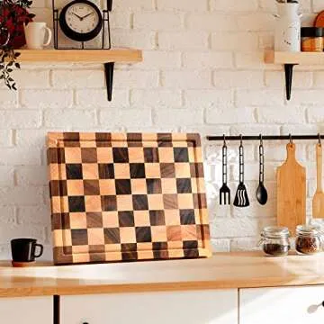 CASANIER Acacia Wood Cutting Board with Scrapers -1.5” Thick Extra Large Butcher Block, Reversible Chopping Board with Juice Groove & Handle Serving Tray for Charcuterie, Gift for Housewarming -18”x14