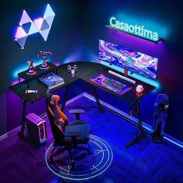Casaottima Gaming Desk L Shaped Computer Desk, Corner Desk for Home Office with Monitor Stand 51", Black