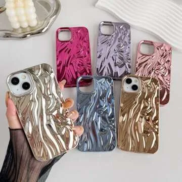 Caseative for iPhone 14 Case,Pleated Water Ripple Chrome Wave Pattern Soft Compatible with iPhone Case (Gold,iPhone 14)