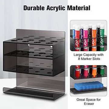 Show moreIntroducing the CaseBot 2-Tier Acrylic Dry Erase Marker Holder, an essential addition to any workspace, classroom, or home environment. Designed with both functionality and aesthetics in mind, this marker holder features an innovative 2-tier storage system that accommodates up to eight dry erase markers and includes a dedicated tray for your erasers. Made from eco-friendly acrylic, this holder is durable and designed for long-lasting use without harmful chemicals. Its sleek black finish ensures it blends seamlessly with any décor while providing a stylish yet practical solution to your marker organization needs.