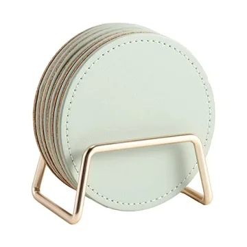 Show more Introducing the CASEGRACE Drink Coasters Set—a beautiful synergy between style and practicality. Perfectly crafted from high-quality PU leather, these coasters are designed to elevate your home's aesthetics while protecting your furniture. With their smooth finish, they effortlessly shield your tables from scratches and stains, making them an essential accessory for any household. The package includes a chic gold metal holder that not only showcases the six included coasters beautifully but also keeps your space organized and clutter-free, allowing you to display these stylish coasters with pride.