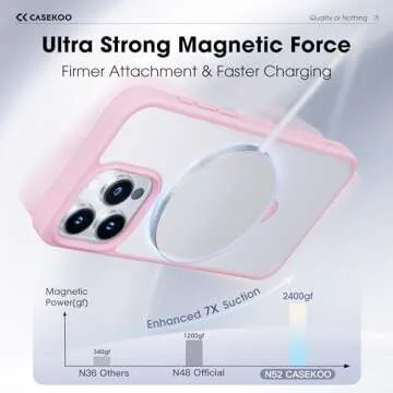 - Ultra Magnetism Enhancement: Featuring an upgraded 25W magnetic capability, this case is equipped with a unique 48 pcs magnets ring structure, ensuring compatibility with MagSafe accessories and third-party Qi-certified chargers.
