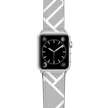 Show more Elevate your Apple Watch experience with the CASETiFY Bands Compatible with Apple Watch Bands! Expertly designed to fit 38mm and 42mm models, this replacement band showcases a stunning grey map outline pattern paired with a sleek silver stainless steel buckle. The unique design not only enhances the aesthetics of your smartwatch but also ensures you carry a piece of artistry on your wrist. Enjoy the perfect blend of style and functionality, making this band an essential accessory for any Apple Watch user.