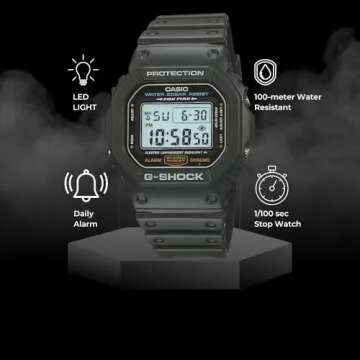 Ideal for everyone, this watch is not only a practical accessory but a stylish addition to any outfit—be it for a casual day out or a rugged outdoor expedition. Whether you're hitting the trails, checking the time while cleaning, or need a reliable companion for unforeseen circumstances, the Casio G-Shock DW5600E-1V stands as a trustworthy choice that embodies both form and function.