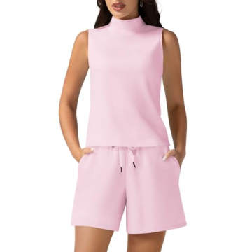 Casly Lamiit Summer Lounge Set Trendy Sleeveless Mock Neck Top High Waisted Shorts Light Pink 2024 Fashion