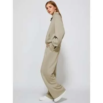 Casly Lamiit Women 2 Piece Outfits 2025 Fall Lounge Set Half Zip Sweatshirt Wide Leg Sweatpant Matching Set Athletic Tracksuit Fashion Winter Travel Clothing Set Sweatsuit Light Khaki L