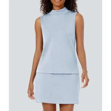 Casly Lamiit Womens Two Piece Skirt Set Tennis Outfits Spring Sweatsuit Mock Neck Tanks Short Skorts Athleisure Running Matching Sets Light Blue S
