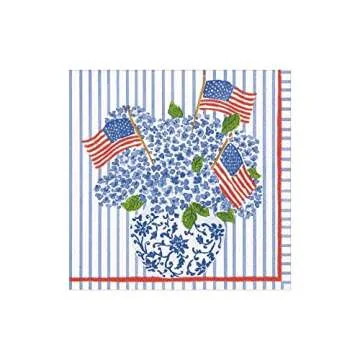 Elegant Caspari American Flags and Hydrangeas Cocktail Napkins - 40 Pack