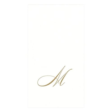 Elegant Caspari White Pearl Paper Linen Guest Towels, Monogram Initial M, Pack of 24